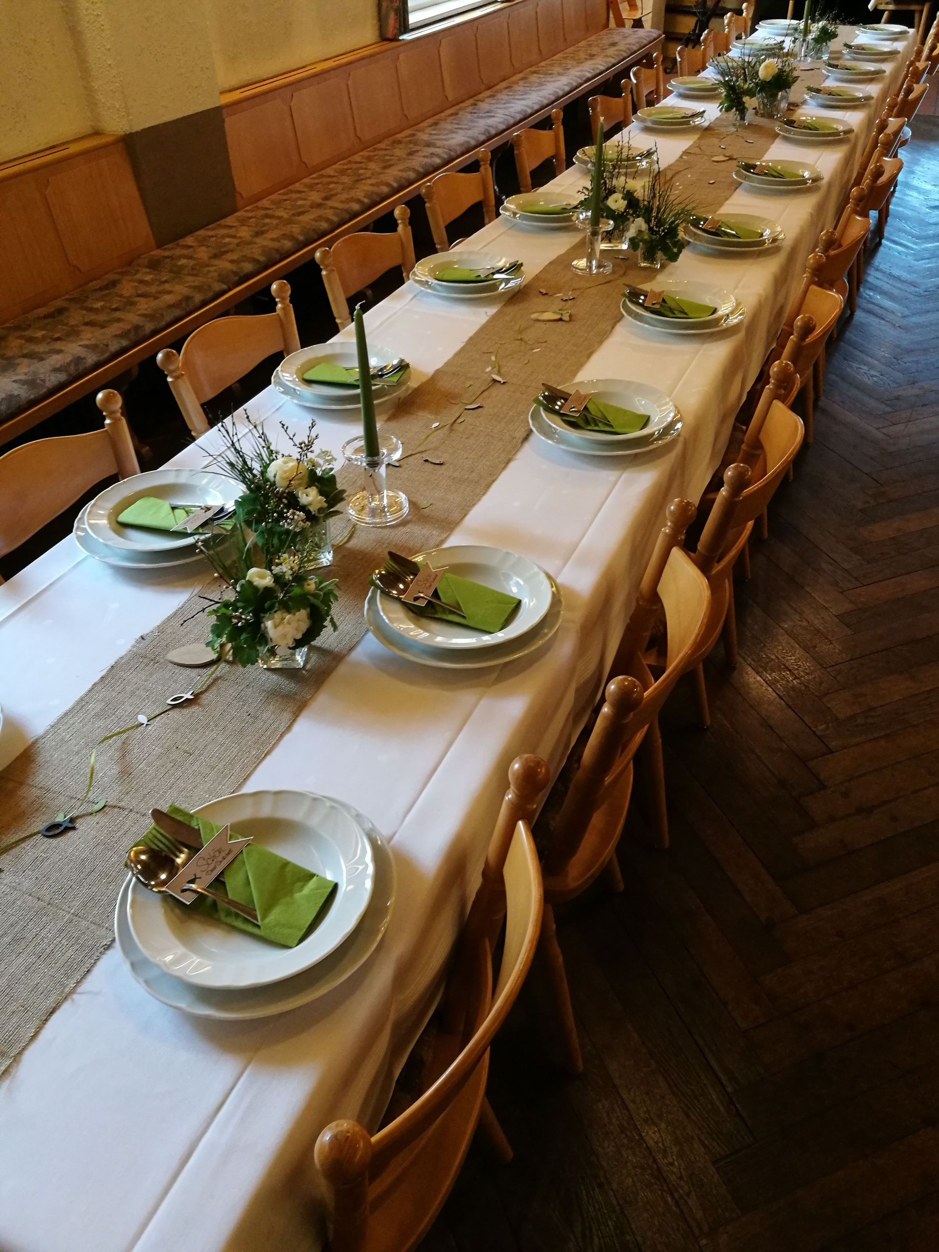 Für Hochzeiten und größere Feste steht Ihnen unser Saal (120 Sitzplätze) inkl. Bühne zur Verfügung.
